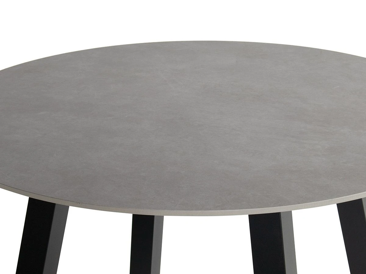 Het tafelblad is gemaakt van keramiek en is hierdoor bestand tegen vuil, weer en wind. Het onderstel is gemaakt van aluminium en is zwart van kleur.