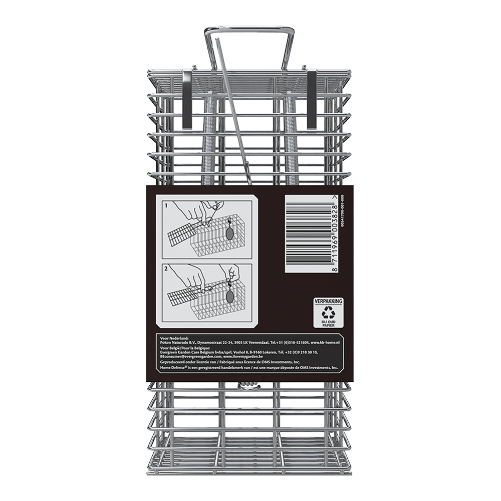 KB Muizenvangkooi is een betrouwbare en stabiele muizenvangkooi en vangt ongecompliceerd muizen zonder letsel toe te brengen. De muizenkooi is uitgerust met een handvat om hem gemakkelijk te kunnen verplaatsen. KB Muizenvangkooi is gemaakt van gegalvaniseerd staal, wat bijdraagt aan een lange levensduur omdat het staal beschermd wordt tegen roest. De kooi kan zowel binnen als buiten gebruikt worden.