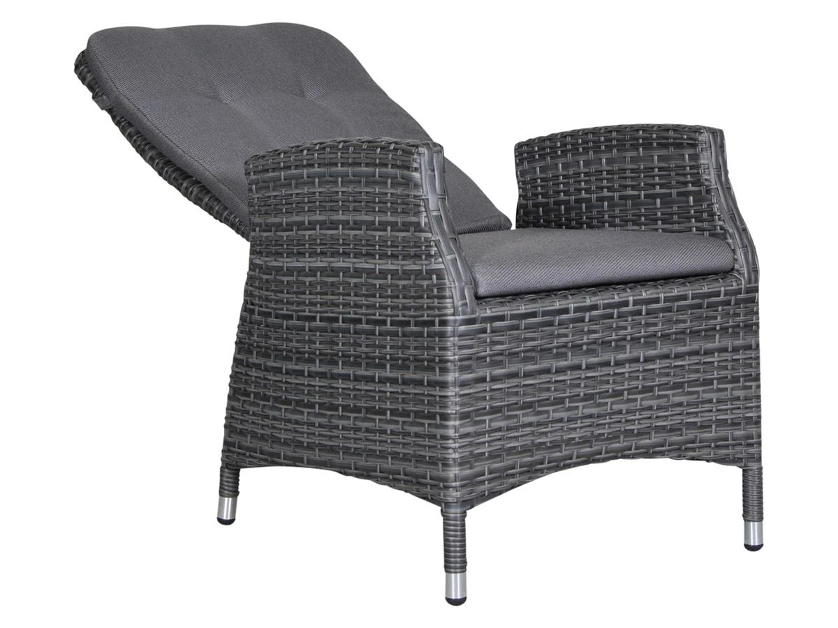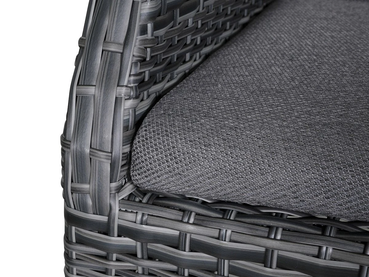 Het frame is gemaakt van aluminium, afgewerkt met kunststof wicker en dus weerbestendig. De kussens zijn gemaakt van Olefin met een stevige vulling. Olefin heeft als mooie eigenschap dat het vuilafstotend en kleurvast is. Hierdoor geniet je nog langer van je tuinstoel. Wel raden wij aan de kussens op te bergen in een box of tas.