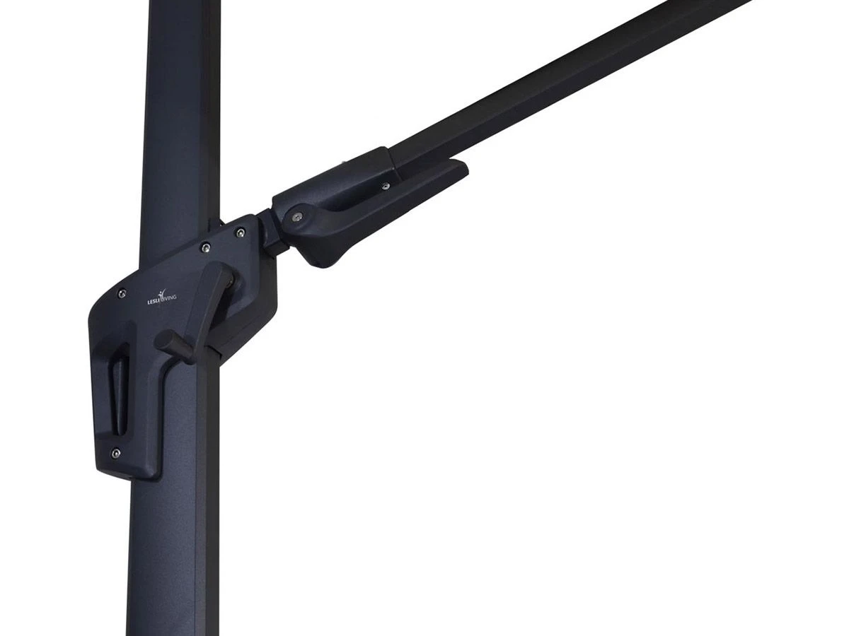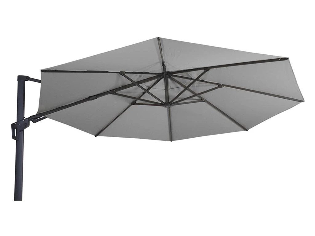 Wil je extra schaduw creëren in je tuin door middel van een parasol? Dan is de Outdoor Feelings Sunny Flex een goede keuze. Een voordeel van een zweefparasol is dat de voet zich aan de zijkant bevindt en dus niet midden op het terras hoeft te staan. Deze ronde zweefparasol heeft een diameter van 350 cm en is 360º graden draaibaar. Deze flex parasol is niet alleen achterwaards maar ook zijwaards kantelbaar door middel van de hendel onder de stang.